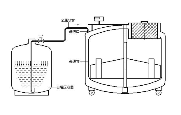 補給罐與液氮儲存罐之間采用法蘭真空軟管柔性連接.
